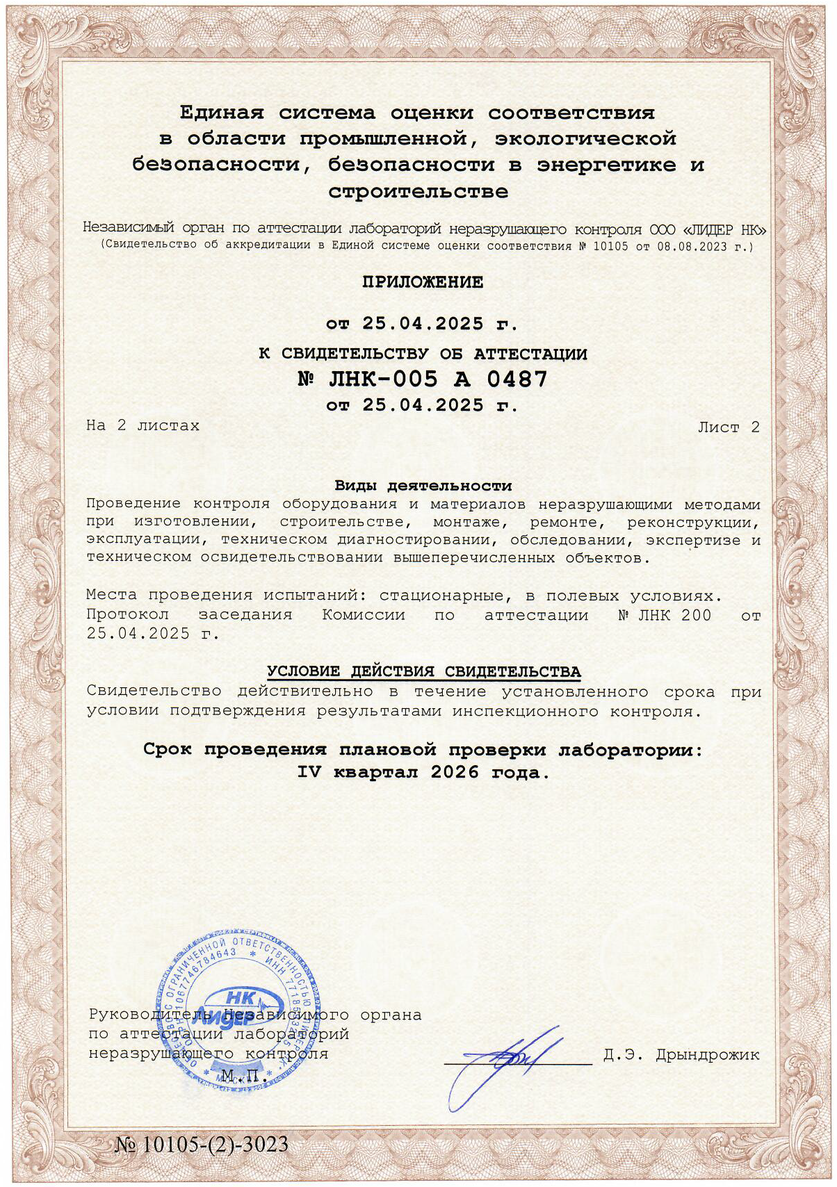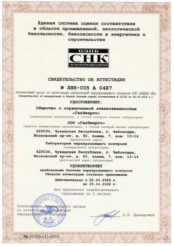 Лаборатория Неразрушающего Контроля аккредитована и аттестована по всем требованиям Ростехнадзора
